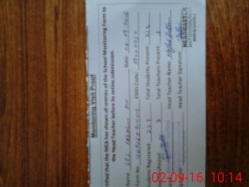 | Monitoring Date: 02-09-2016 | Start Time: 02-09-2016 09:10 AM | End Time: 02-09-2016 10:14 AM | Name of MEA: Gh**** Mu**** Mu**** (R**** | |