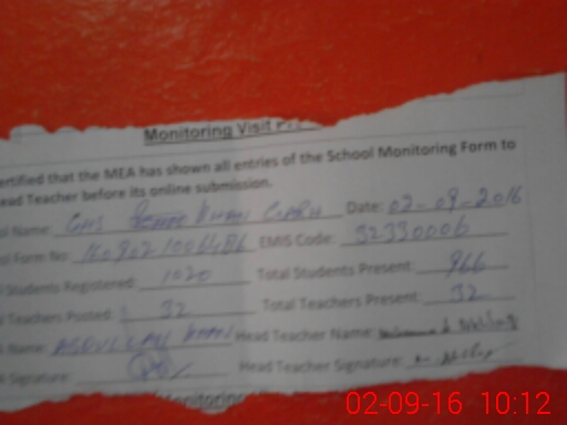 | Attendance Register | Head Teacher | MEA with School | Visit Proof |