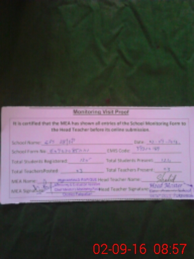 | Certified that this School was Inspected by the Undersigned MEA/DMO Today and the Information Stated Above is as Per Record. | |||||