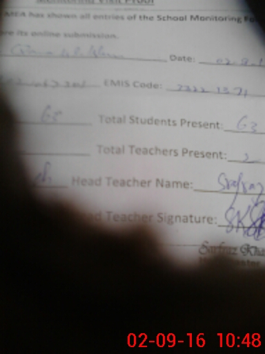 | Name: MU**** NA**** Designation: (School Headmaster's/Headmistress's) PST Phone/Cell Number: 03**** |