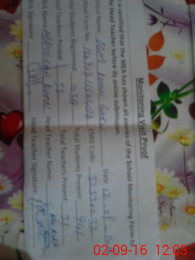 | Certified that this School was Inspected by the Undersigned MEA/DMO Today and the Information Stated Above is as Per Record. | |||||