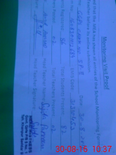 | Certified that this School was Inspected by the Undersigned MEA/DMO Today and the Information Stated Above is as Per Record. | |||||