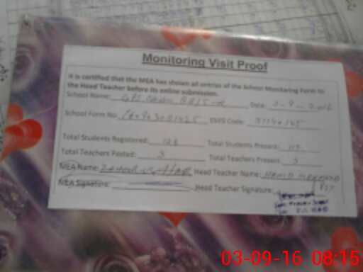 | Attendance Register | Head Teacher | MEA with School | Visit Proof |