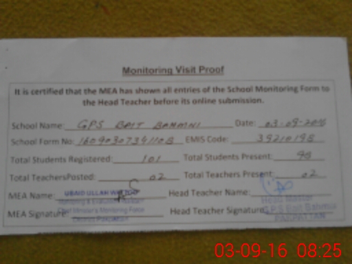 | EMIS Code: 39210198 | Name of School: GPS BAIT BAHMANI | |||