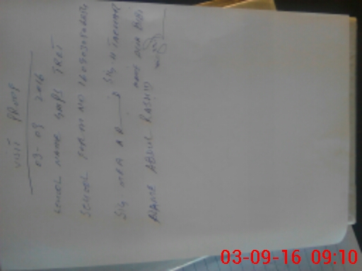 | School Visited by School Health & Nutrition Supervisor (No. of Visits) | 1 | Name1: | ROOMA NAZ | Name2: | O |