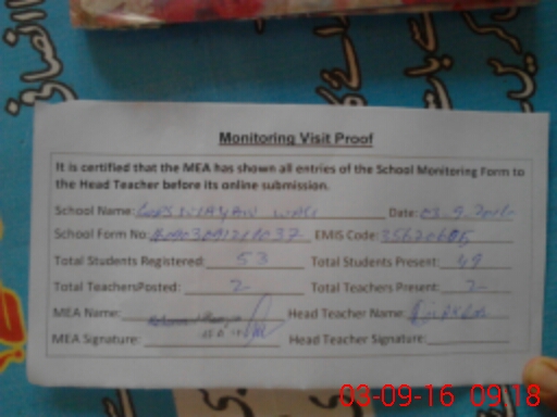 | EMIS Code: 35620605 | Name of School: GPS WAIAN WALI CHAK 27 | |||
