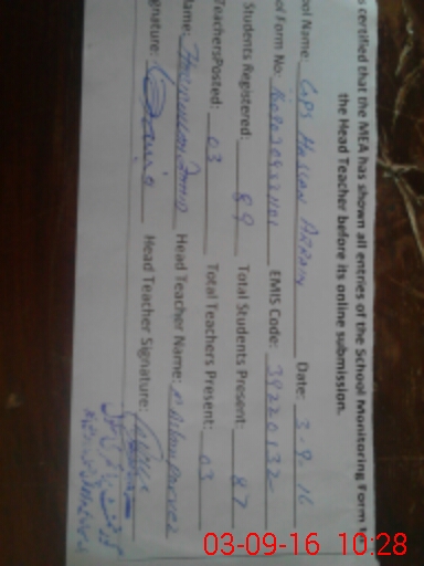 | Name: MU**** SH**** Designation: (School Headmaster's/Headmistress's) PST Phone/Cell Number: 03**** |