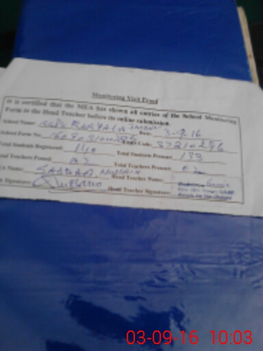 | Name: Sa**** Sh**** Designation: (School Headmaster's/Headmistress's) Headmistress Phone/Cell Number: 03**** |