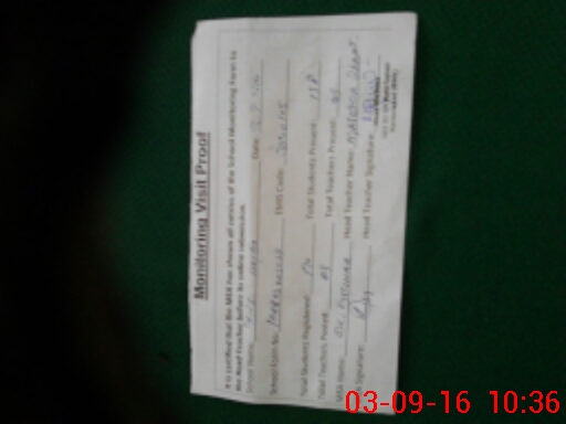 | Attendance Register | Head Teacher | MEA with School | Visit Proof |