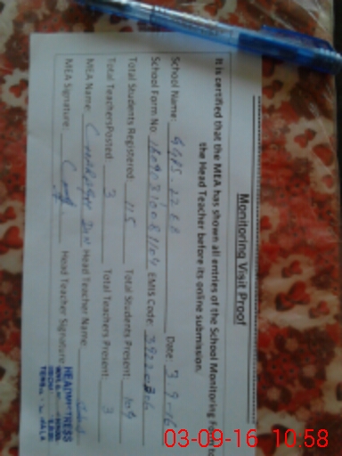 | Certified that this School was Inspected by the Undersigned MEA/DMO Today and the Information Stated Above is as Per Record. | |||||