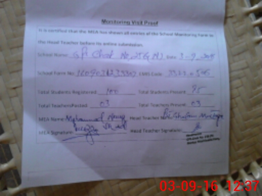 | Attendance Register | Head Teacher | MEA with School | Visit Proof |