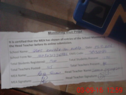 | Certified that this School was Inspected by the Undersigned MEA/DMO Today and the Information Stated Above is as Per Record. | |||||