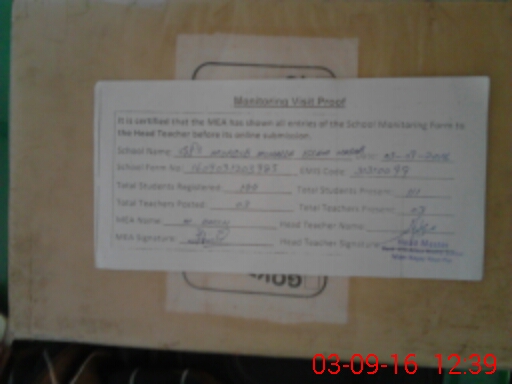| Attendance Register | Head Teacher | MEA with School | Visit Proof |