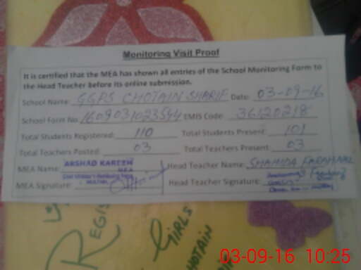 | EMIS Code: 36120218 | Name of School: GMPS CHOTAIN SHARIF | |||