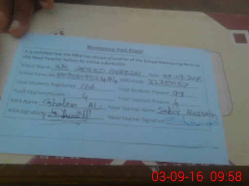 | Certified that this School was Inspected by the Undersigned MEA/DMO Today and the Information Stated Above is as Per Record. | |||||
