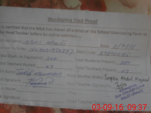 | Certified that this School was Inspected by the Undersigned MEA/DMO Today and the Information Stated Above is as Per Record. | |||||