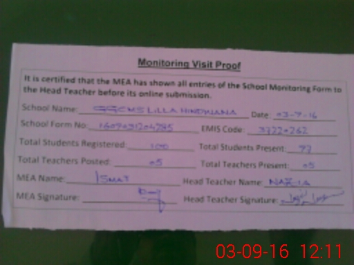 | Certified that this School was Inspected by the Undersigned MEA/DMO Today and the Information Stated Above is as Per Record. | |||||
