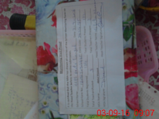| Attendance Register | Head Teacher | MEA with School | Visit Proof |