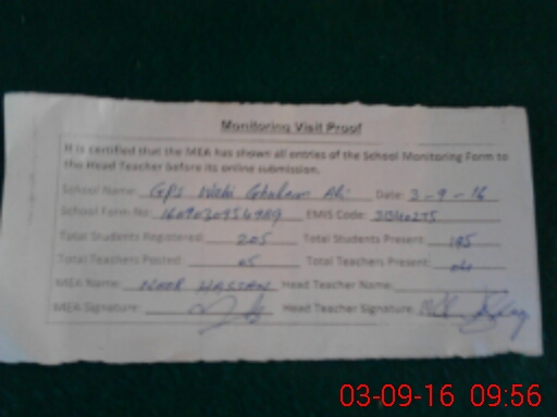 | EMIS Code: 31340275 | Name of School: GPS WAHI GHULAM ALI | |||