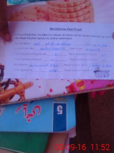 | Attendance Register | Head Teacher | MEA with School | Visit Proof |