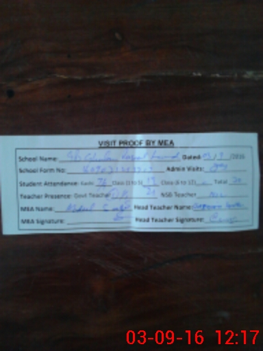| Attendance Register | Head Teacher | MEA with School | Visit Proof |