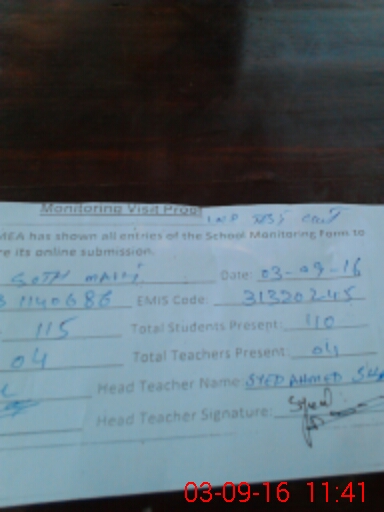 | EMIS Code: 31320245 | Name of School: GPS GOTH MAHI | |||