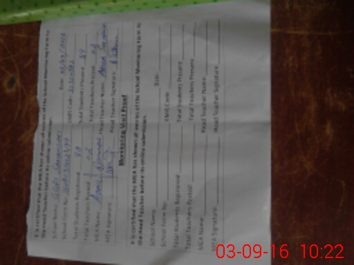 | Attendance Register | Head Teacher | MEA with School | Visit Proof |