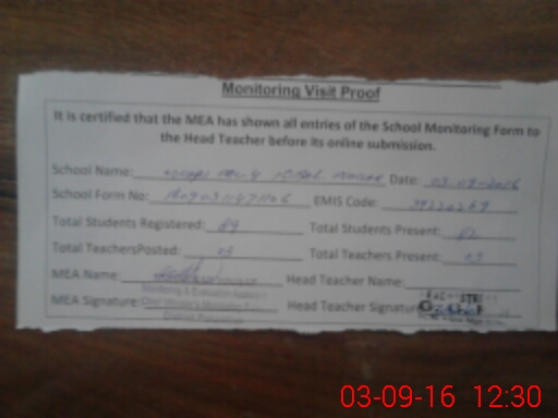 | Attendance Register | Head Teacher | MEA with School | Visit Proof |