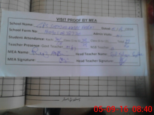 | Attendance Register | Head Teacher | MEA with School | Visit Proof |