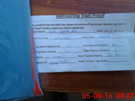 | Attendance Register | Head Teacher | MEA with School | Visit Proof |