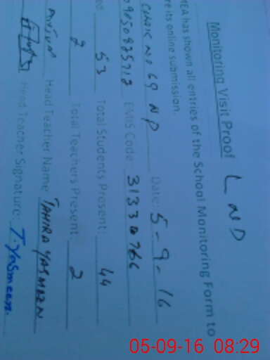 | Certified that this School was Inspected by the Undersigned MEA/DMO Today and the Information Stated Above is as Per Record. | |||||