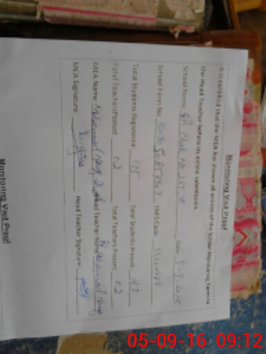 | Attendance Register | Head Teacher | MEA with School | Visit Proof |