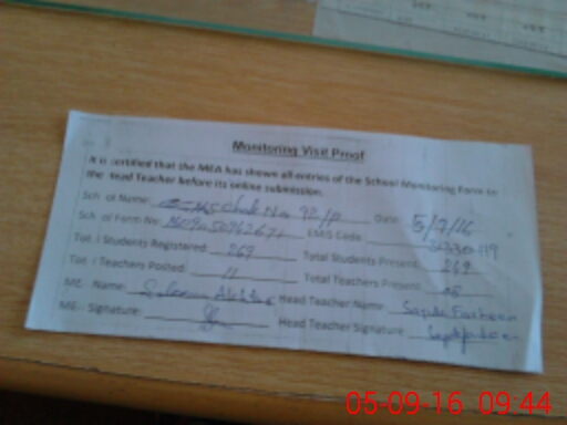| Attendance Register | Head Teacher | MEA with School | Visit Proof |
