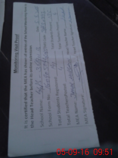 | Attendance Register | Head Teacher | MEA with School | Visit Proof |