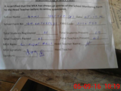| Attendance Register | Head Teacher | MEA with School | Visit Proof |