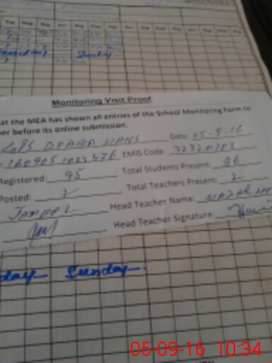 | Attendance Register | Head Teacher | MEA with School | Visit Proof |