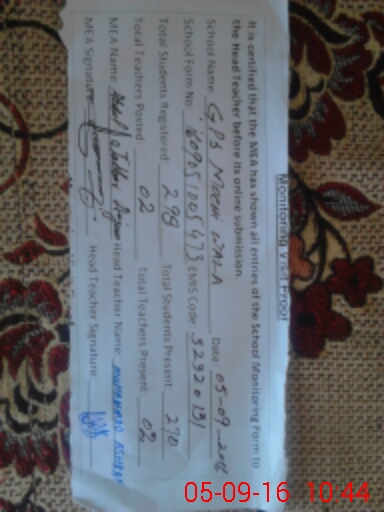 | Name: M.**** Designation: (School Headmaster's/Headmistress's) PST Phone/Cell Number: 03**** |