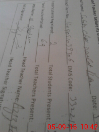 | Name: AZ**** FA**** Designation: (School Headmaster's/Headmistress's) PST/PTC/JV Phone/Cell Number: 03**** |