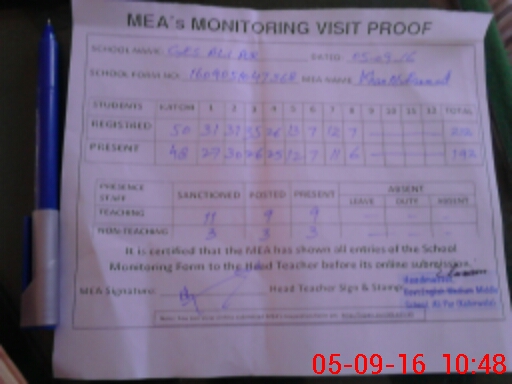 | Attendance Register | Head Teacher | MEA with School | Visit Proof |