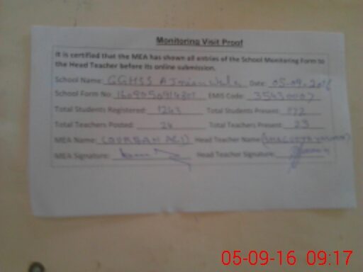 | Certified that this School was Inspected by the Undersigned MEA/DMO Today and the Information Stated Above is as Per Record. | |||||
