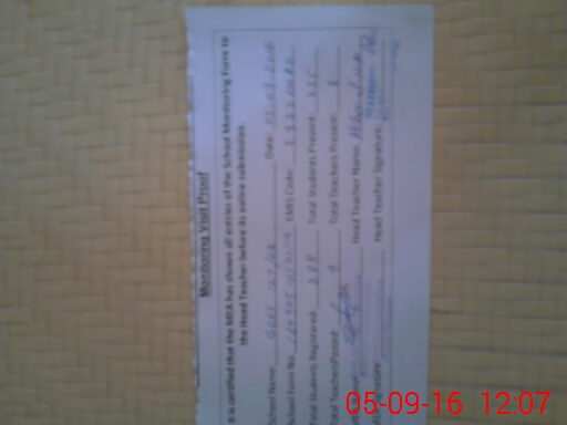| Name: MI**** NO**** Designation: (School Headmaster's/Headmistress's) EST MATH Phone/Cell Number: 03**** |