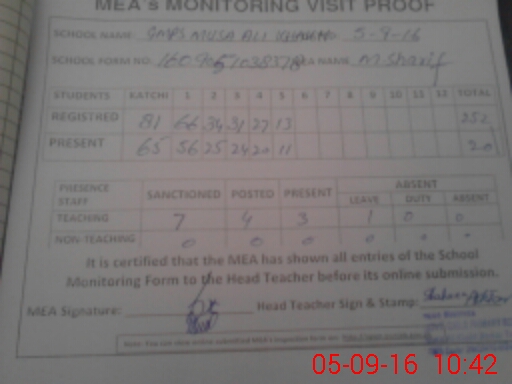 | Certified that this School was Inspected by the Undersigned MEA/DMO Today and the Information Stated Above is as Per Record. | |||||