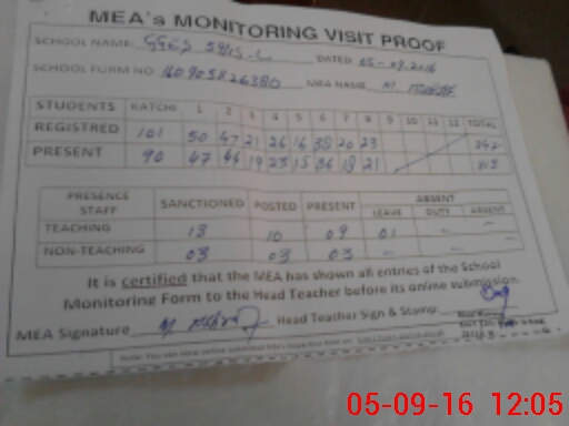 | Certified that this School was Inspected by the Undersigned MEA/DMO Today and the Information Stated Above is as Per Record. | |||||