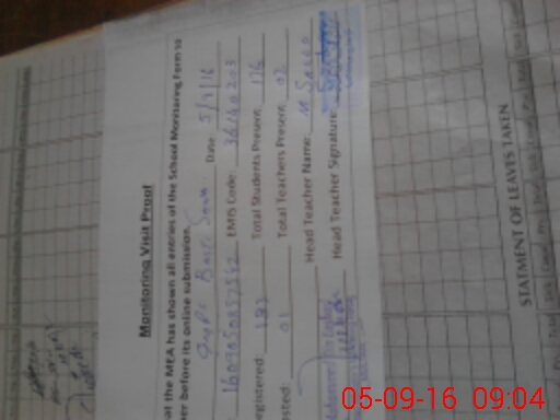| Attendance Register | Head Teacher | MEA with School | Visit Proof |