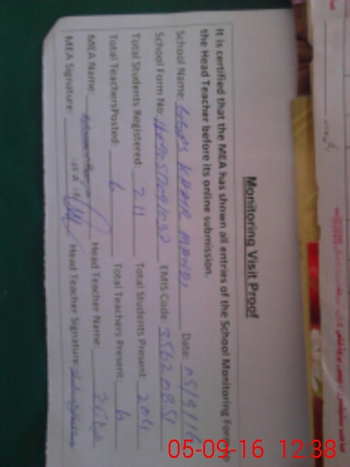 | Attendance Register | Head Teacher | MEA with School | Visit Proof |