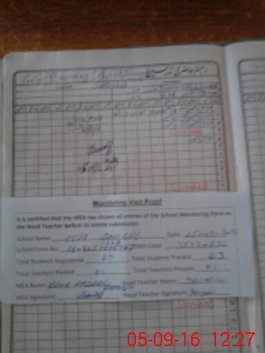 | Attendance Register | Head Teacher | MEA with School | Visit Proof |