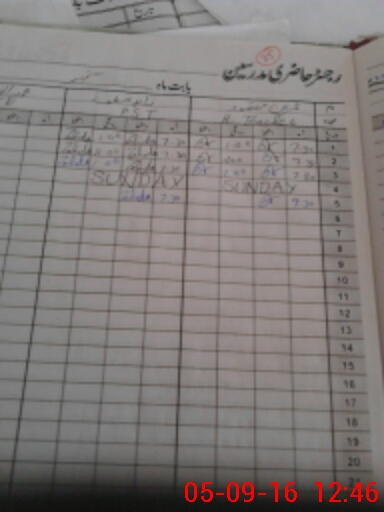 | CNIC | Full Name | Designation | R/C | Absence During Last Calender Month |