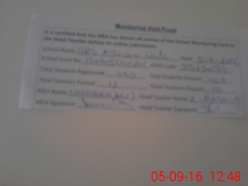| Attendance Register | Head Teacher | MEA with School | Visit Proof |