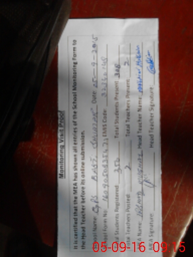 | Certified that this School was Inspected by the Undersigned MEA/DMO Today and the Information Stated Above is as Per Record. | |||||