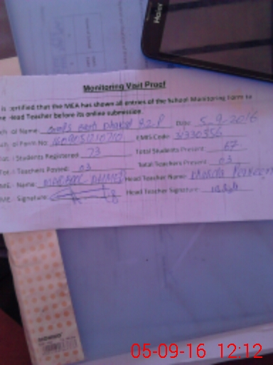 | Attendance Register | Head Teacher | MEA with School | Visit Proof |